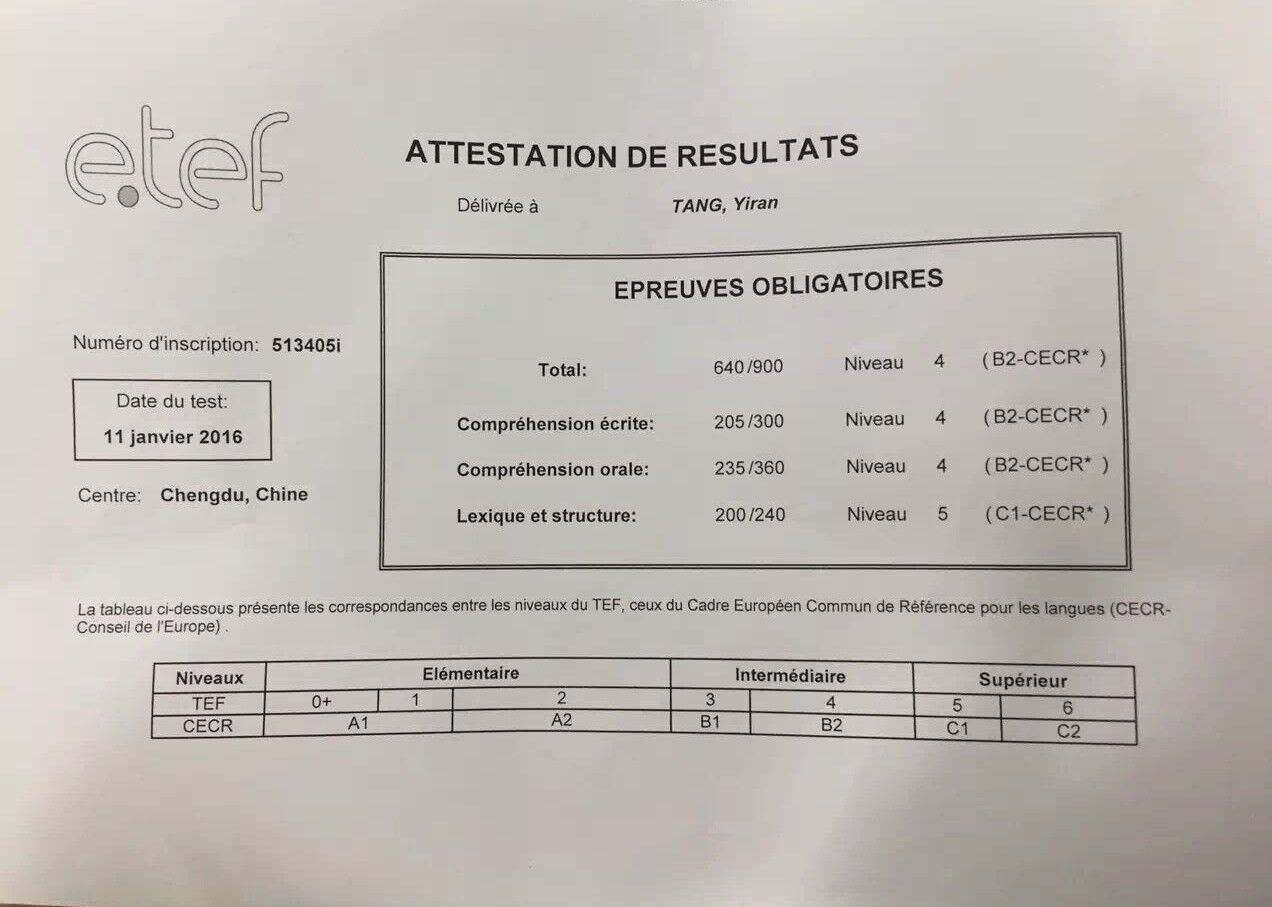 考試類型:TCF所報課程:出國班