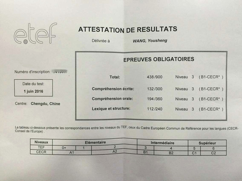 考試類型:TEF所報課程:出國班出國班的同學王同學的成績單,順利考過B1啦,恭喜恭喜!