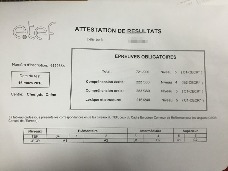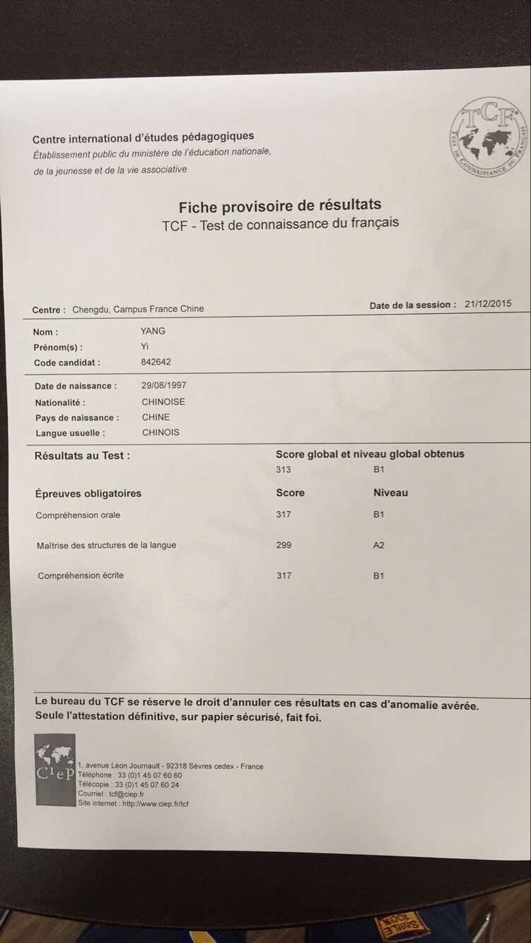 考試類型:TEF所報課程:法語VIP法亞C1高分學員