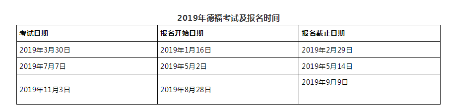 2019年全年德福考試及報(bào)名時(shí)間