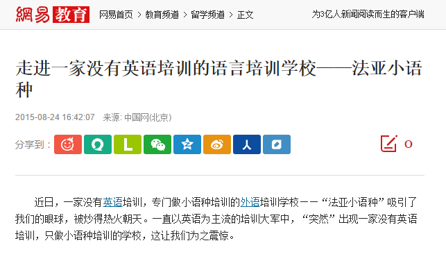 走進(jìn)一家沒有英語培訓(xùn)的語言培訓(xùn)學(xué)校——法亞小語種