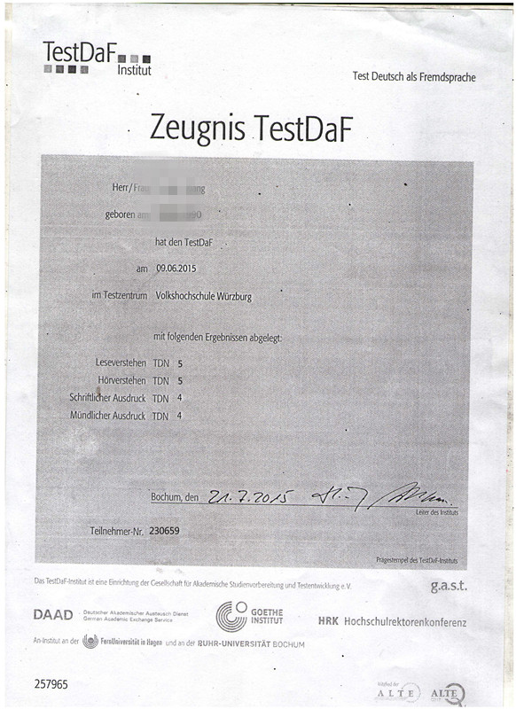 考試類型:TestDAF考試所報(bào)課程: