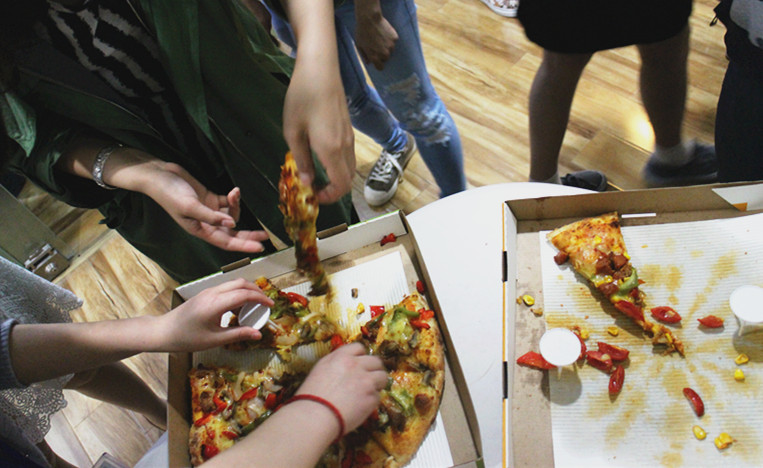 待小編我反應(yīng)過來拍照,好吃的pizza就被搶完啦,你們這群小吃貨!