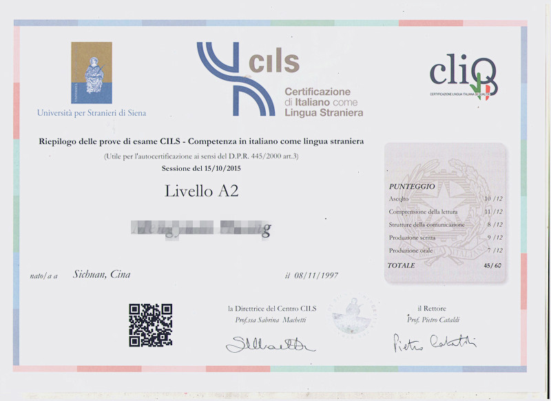 考試類型:CILS所報(bào)課程:初級(jí)班意大利語(yǔ) CILS B1