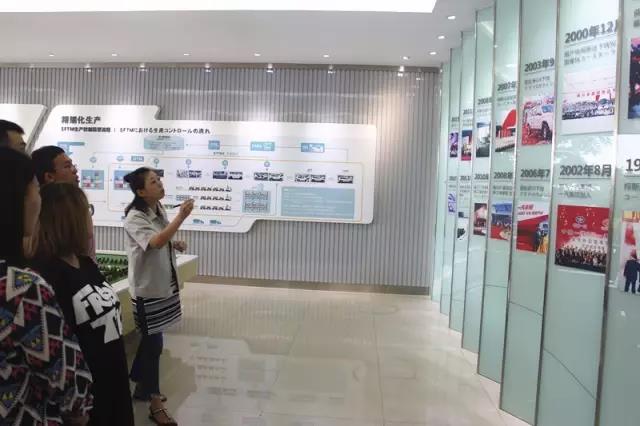 首先,大家對公司的基本構架進行了了解。  在大廳的內部呈現著四川一汽豐田現在生產的兩款車型,還有公司生產線運行的主要流程。井井有條的布置,一目了然的看板,讓公司每一個出入的人都能對自己的工作區(qū)以及負責的版塊一目了然。