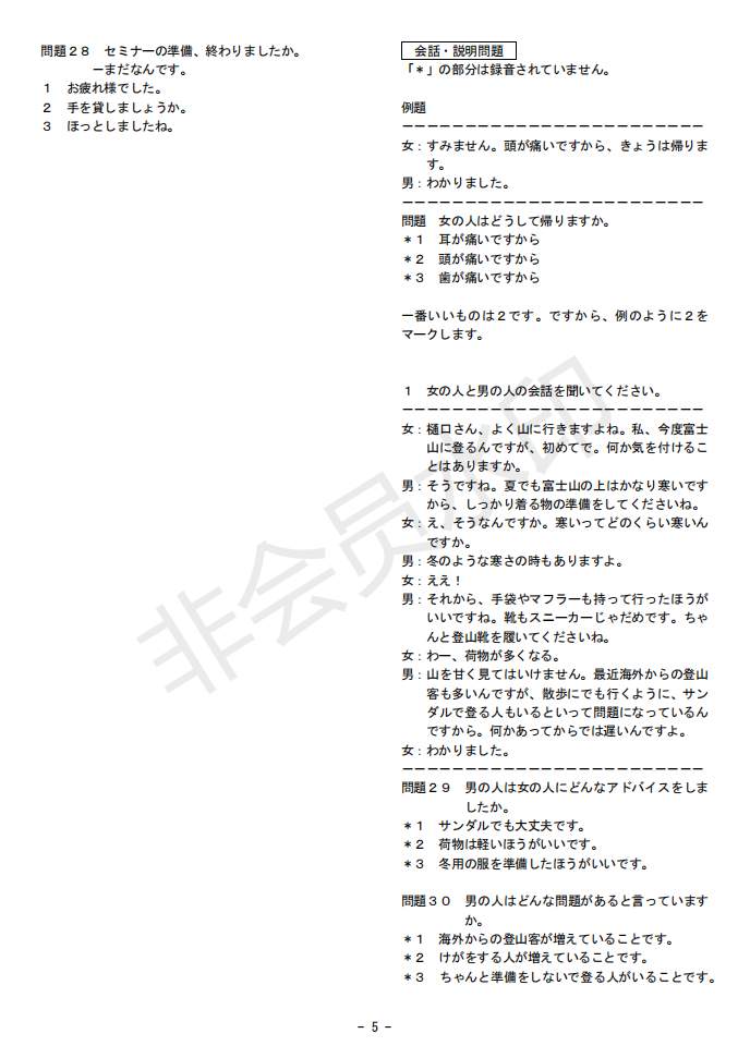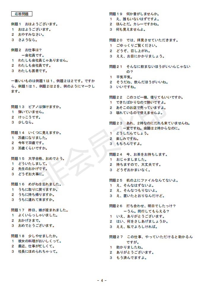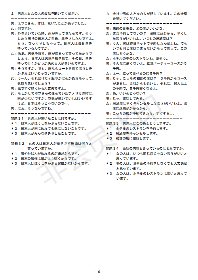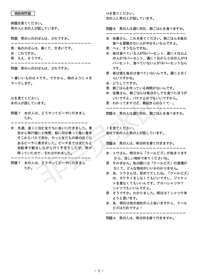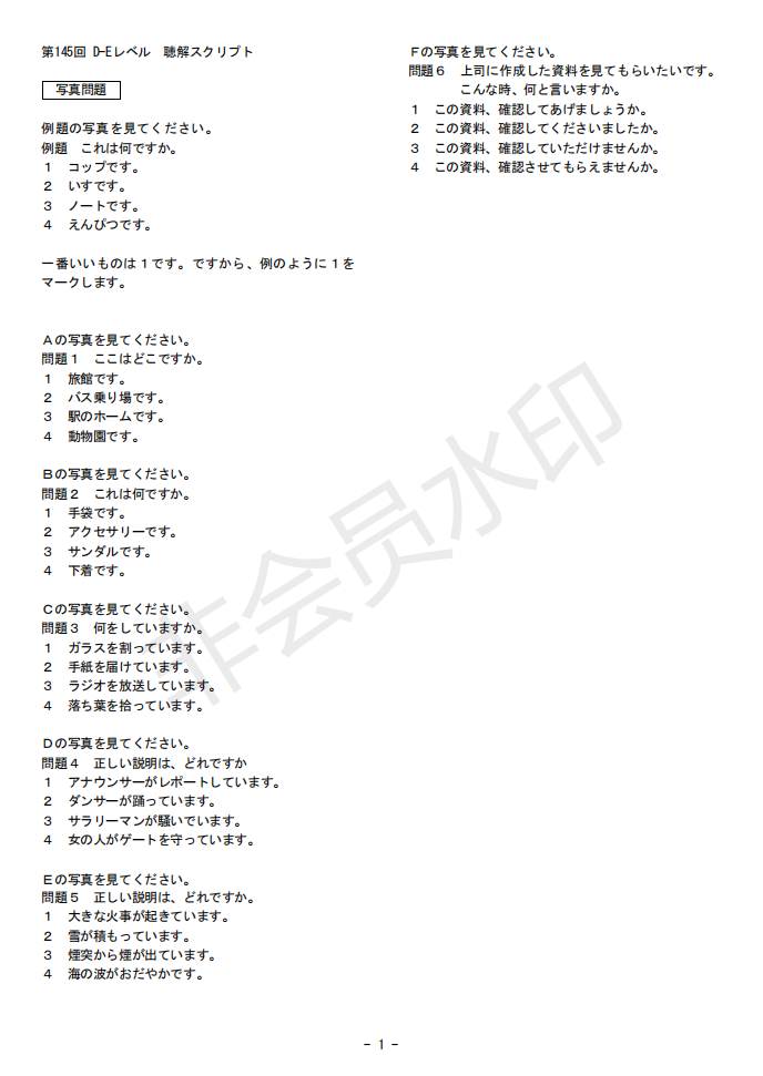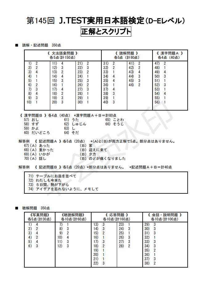 日語J.TEST第145回考試答案(D-E級)