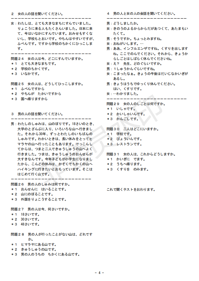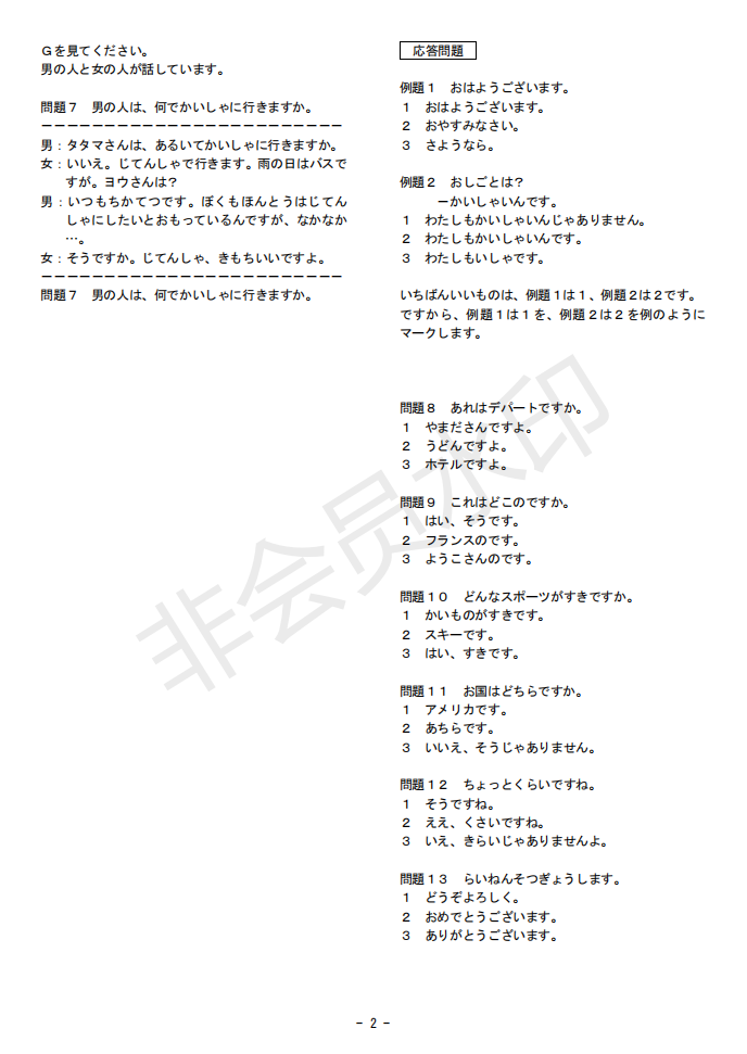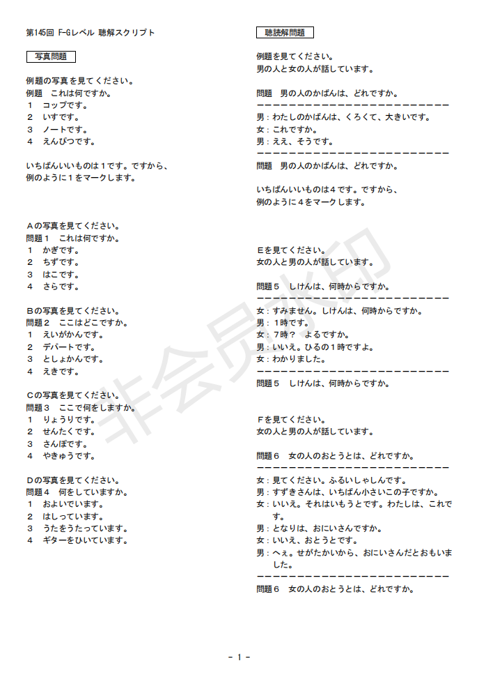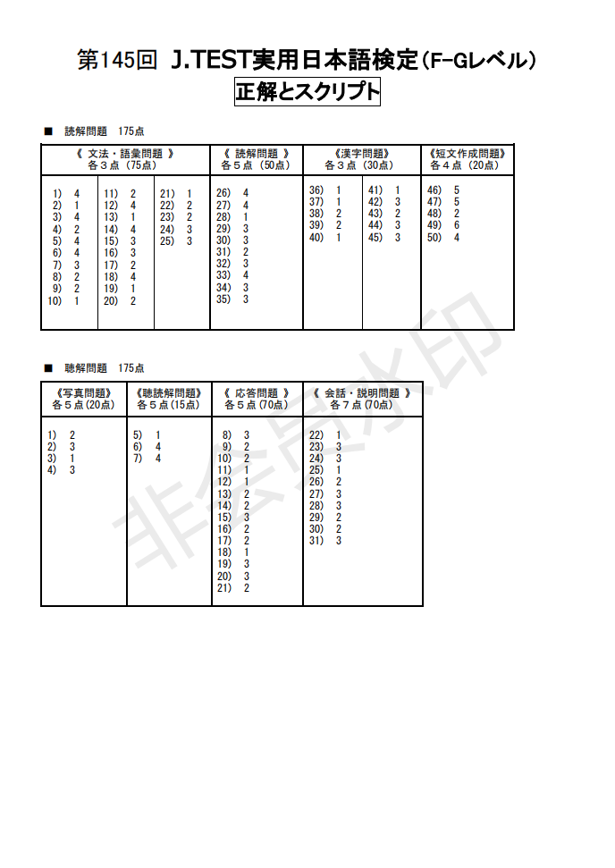日語J.TEST第145回考試答案(F-G級)