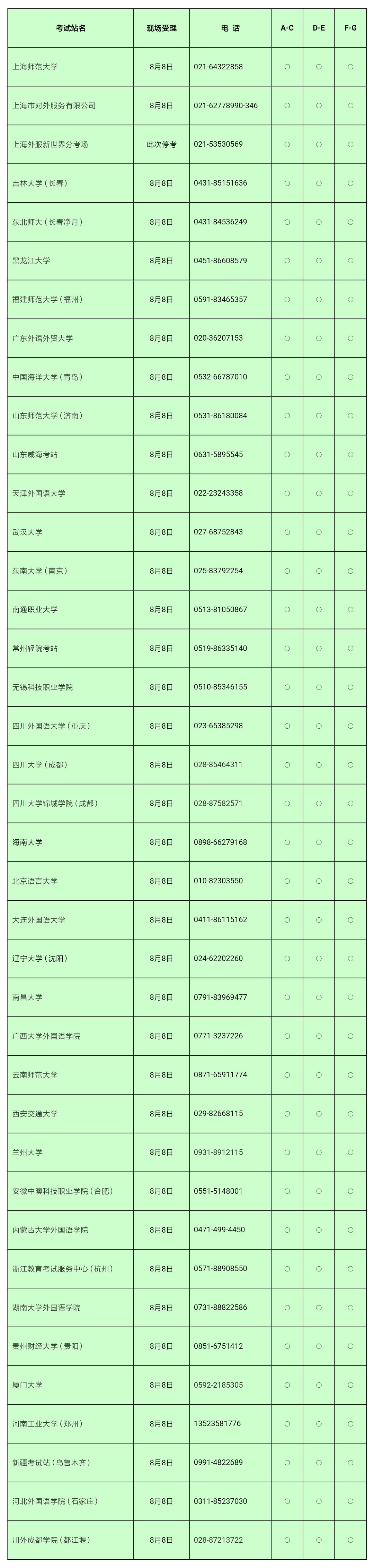 開(kāi)考級(jí)別:A-C級(jí)別、D-E級(jí)別、F-G級(jí)別