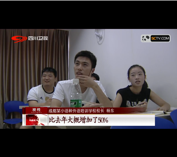 《視線》是四川衛(wèi)視一檔記錄四川地區(qū)焦點熱點的新聞訪談類節(jié)目,這一次對我校的采訪分為兩個方面,第一是就學(xué)習(xí)小語種的原因目的對學(xué)生進行調(diào)查,第二是就小語種培訓(xùn)行業(yè)目前狀態(tài)和以后走勢對我校負責(zé)人進行了訪問。