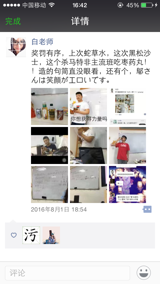 不愧是學(xué)習(xí)委員,突然想到以前我們班的臟活兒累活兒也都是推給學(xué)習(xí)委員的= =心疼學(xué)習(xí)委員一秒鐘……“姚明”哥哥,你還好嗎?在班上有什么問(wèn)題一定要跟老師說(shuō),這種“欺凌現(xiàn)象”在法亞是堅(jiān)決不允許的!