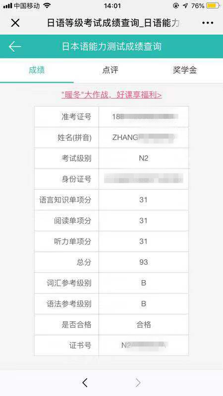 您現(xiàn)在的位置:日語首頁日語學員成績