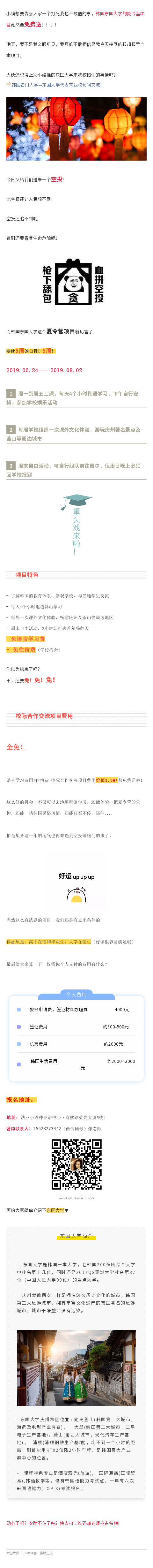 韓國東國大學(xué)夏令營3項項目價值1.5w+全免費送?