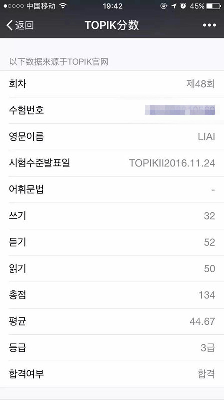 韓國(guó)學(xué)員成績(jī)