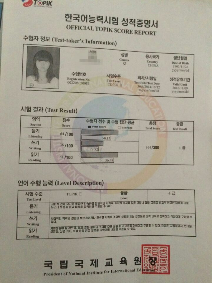韓國學員成績