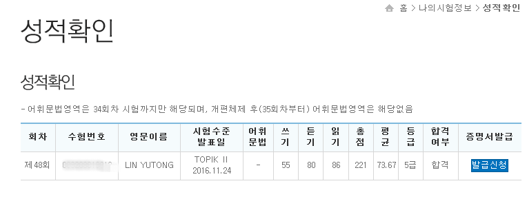 韓國學(xué)員成績