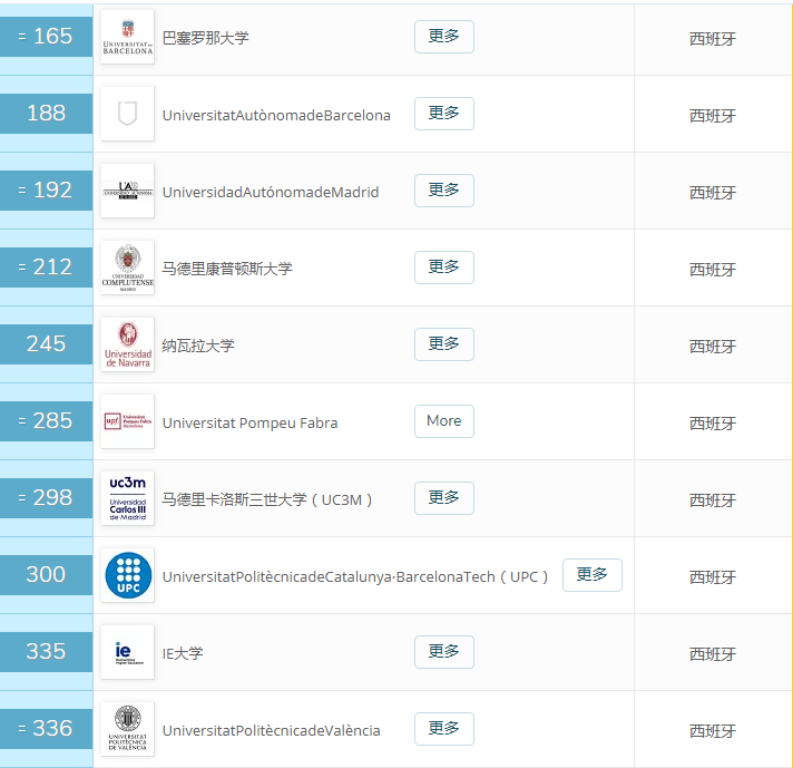 2020 QS西班牙大學(xué)排名TOP10