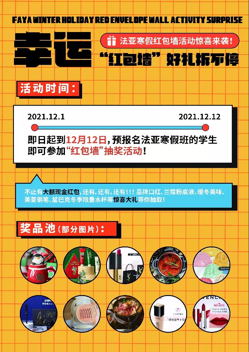 聚惠暖冬,法亞100%中獎紅包墻活動正在火熱進行中,來和同學(xué)們一起沾沾喜氣吧?