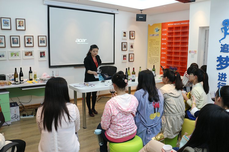 何柳娜老師在給同學(xué)們詳細的講解紅酒相關(guān)知識