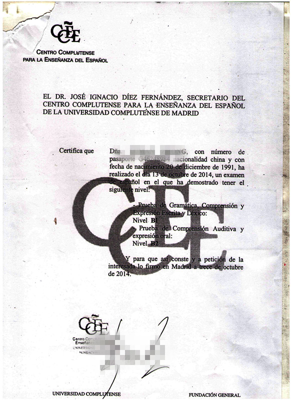 考試類型:DELE B1所報(bào)課程:西班牙語(yǔ)出國(guó)班胡同學(xué)順利通過(guò)B1